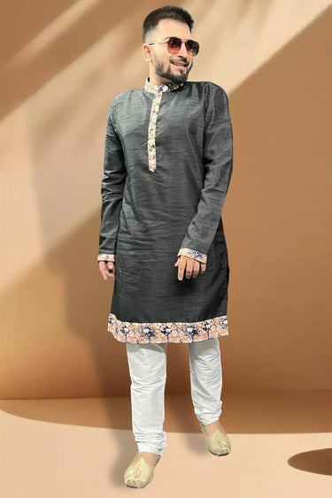 Fancy Black Color Silk Fabric Function Wear Readymade Kurta Pyjama For Men