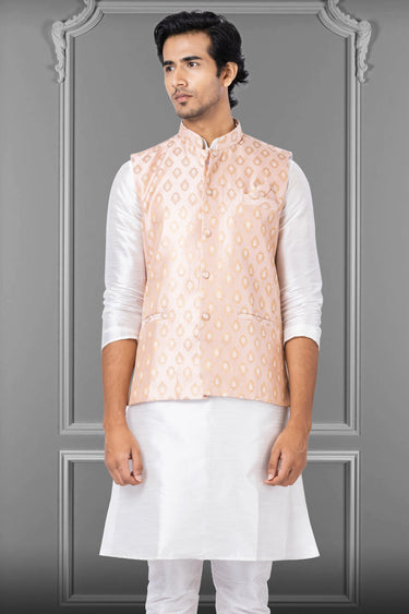 Jacquard Silk Fabric Pink Festive Wear Readymade Stunning Jacket For Men