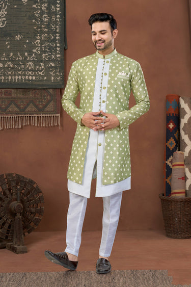 Off White Banarasi Silk Fabric Wedding Wear Readymade Indo Western For Men