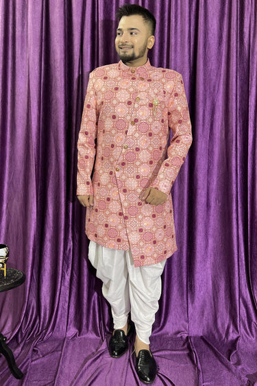 Pink Color Wedding Wear Cotton Fabric Designer Readymade Peshawari Style Indo Western For Men