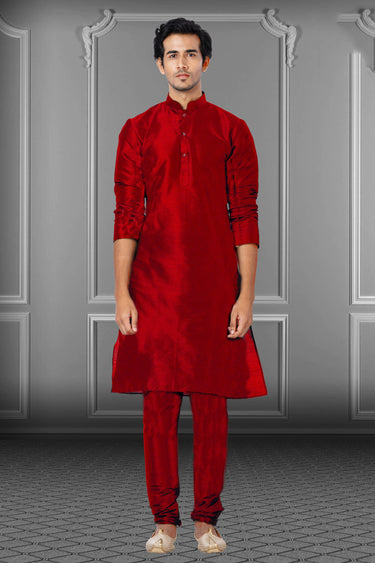 Red Dhupion Fabric Reception Wear Striking Kurta Pyjama For Men