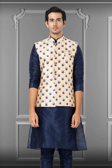 Reception Wear Readymade Beige Jacquard Silk Fabric Beautiful Jacket For Men