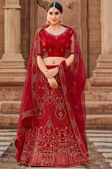 Maroon Color Net Fabric Awesome Function Wear Lehenga