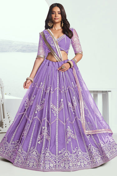 Net Fabric Lavender Color Sangeet Wear Lehenga Choli