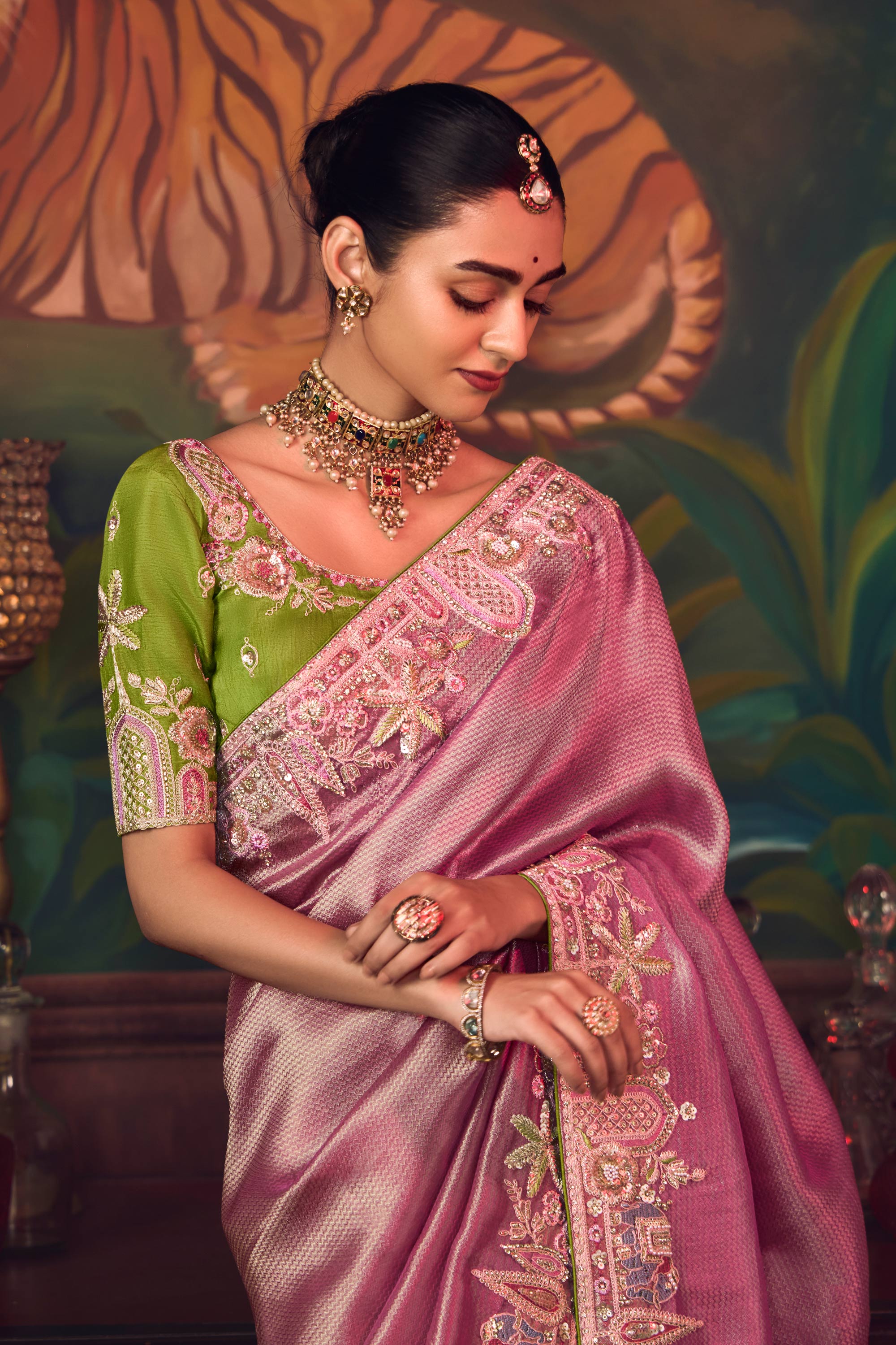 Enhance your ethnic collection with this graceful Heavy Border Work Wedding Bridal Silk Saree. Featuring luxurious silk fabric adorned with intricate border craftsmanship, this saree offers timeless beauty for weddings and celebrations. Accompanied by an unstitched blouse showcasing heavy detailing, you can create a tailored fit for added elegance. Designed for women who love a blend of tradition and luxury, this saree is perfect for making a bold yet refined statement. Treat yourself to unparalleled sophistication.