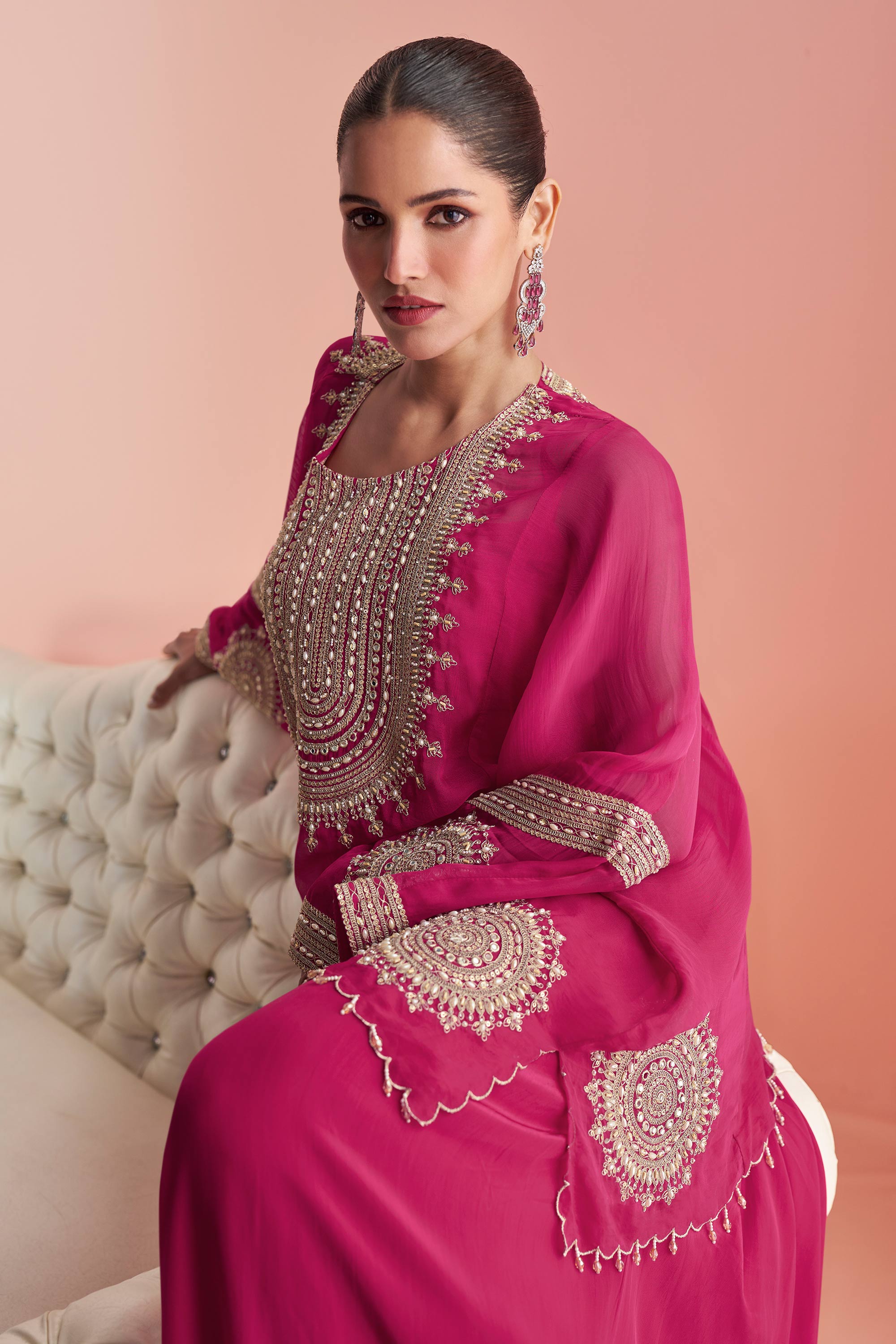 Our skilled artisans meticulously craft each attire with care, but outfits adorned with beads and sequins require delicate handling. Some beads or sequins may naturally loosen over time, but this does not affect the overall look of the outfit. Embrace the sparkle and wear it with confidence!