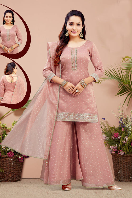 Step into elegance with Reachs Color Silk Readymade Palazzo Suit, designed specifically for festive events. Made from premium silk, this outfit provides a luxurious feel without compromising on comfort. The ensemble includes a beautifully detailed kurta and a flowy palazzo, creating a perfect blend of tradition and contemporary style. Whether it's a family gathering or a special event, this suit will make you the center of attention. Easy to wear and maintain, it’s an excellent choice for those who value both style and convenience. Available in a range of sizes and colors to suit your taste.