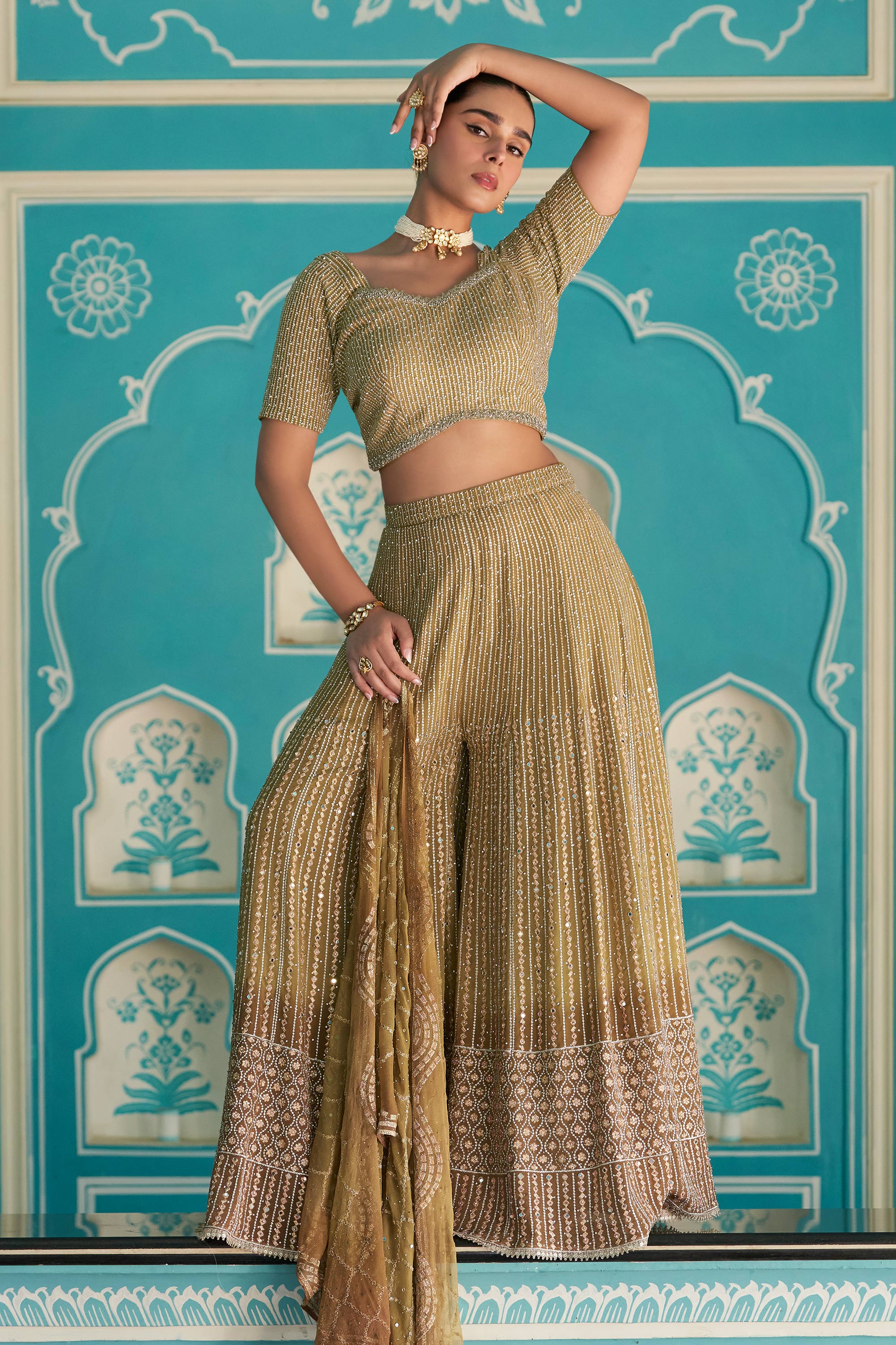 Georgette Cream Indo Western Readymade Palazzo With Short Top