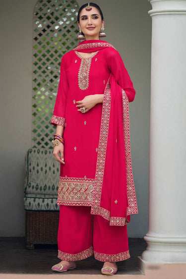 Georgette Fabric Pink Color Embroidered Winsome Palazzo Suit