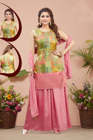 Silk Green Printed Readymade Palazzo Salwar Kameez