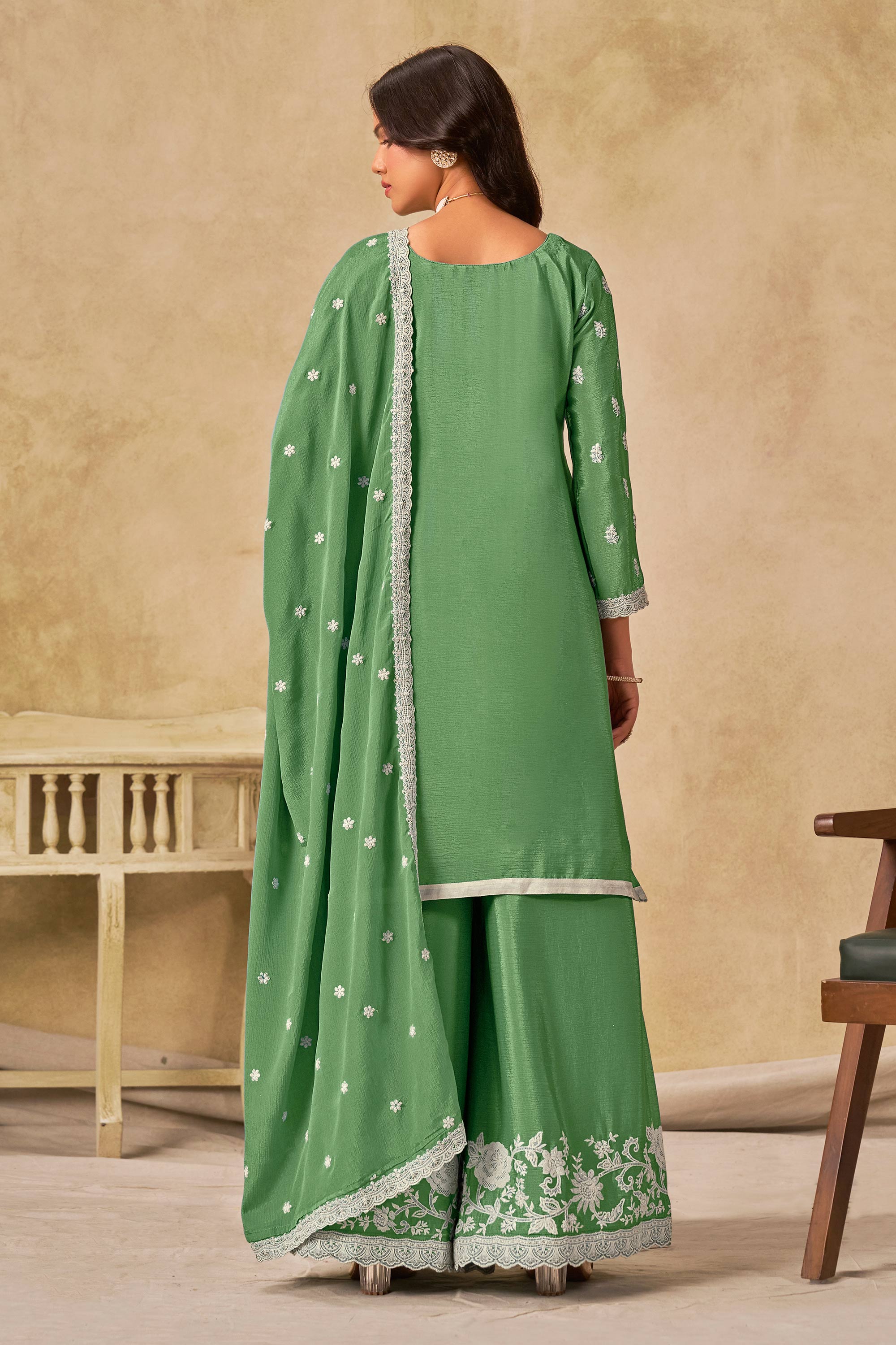 Chinon Sea Green Designer Palazzo Salwar Suit