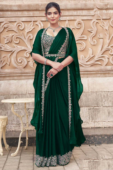 Green Shimmer Chiffon Hand Work Ready to wear saree
