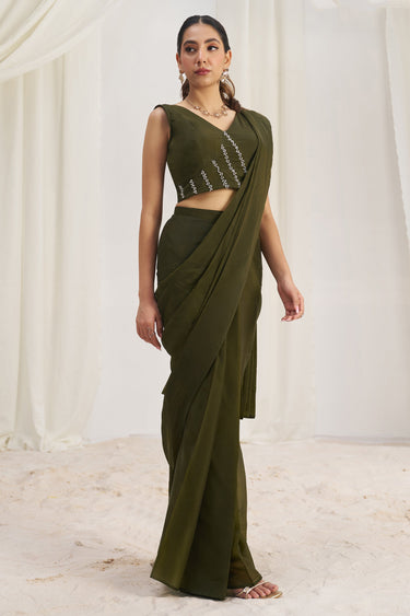 Olive Ready To Wear Party Wear Hand Work Saree