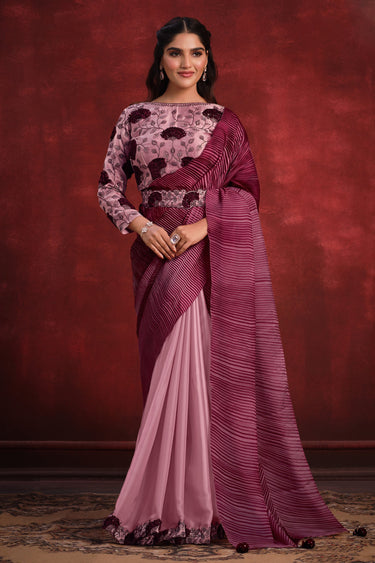 Discover elegance with our Champagne reach Ready To Wear Stone Work Saree. This exquisite piece blends tradition with contemporary design, featuring delicate stone embellishments that add a touch of sparkle. The soothing champagne reach color is perfect for any festive occasion or special event. Made from high-quality fabric, this saree drapes beautifully, providing a comfortable and flattering fit. Ideal for weddings, parties, or cultural celebrations, it will make you stand out in any crowd. Easy to wear and maintain, it comes pre-stitched, saving you time and hassle.
