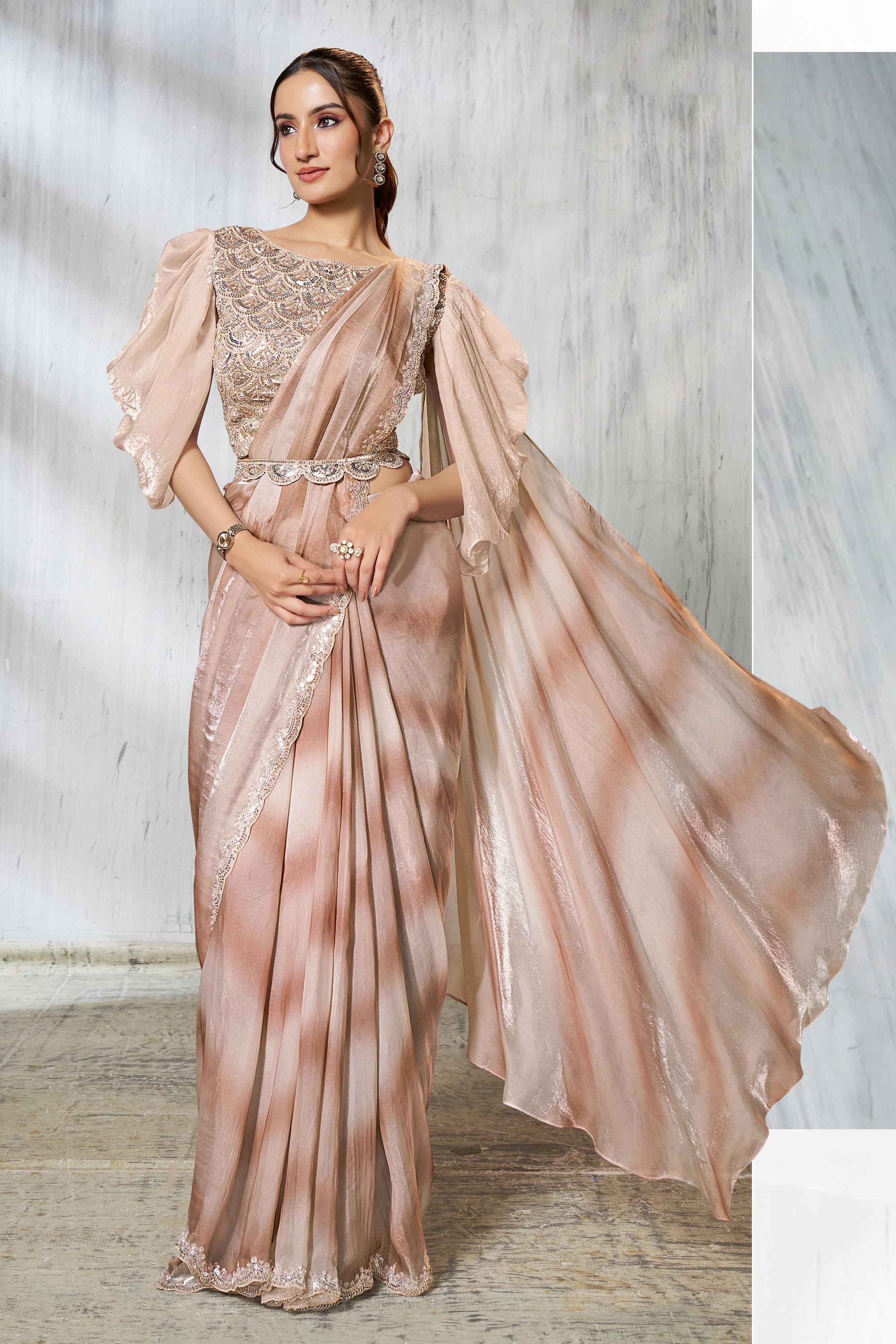 Embrace sophistication with this ready-to-wear saree crafted from high-quality satin silk. Intricately adorned with beadwork, this saree provides an opulent feel, making it an ideal choice for celebrations and formal gatherings. With its pre-draped style, you can easily enjoy the traditional look without spending hours trying to achieve the perfect pleats. The smooth texture of the satin silk offers both comfort and an alluring shine. Designed for convenience, this saree makes dressing up effortless while still ensuring you stand out. Suitable for festive occasions and a thoughtful gift option for loved ones.