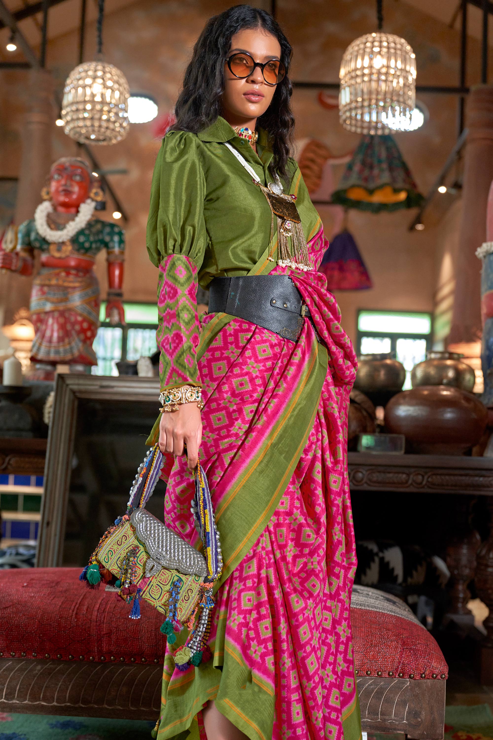 Enhance your bridal wardrobe with this luxurious Art Silk Designer Saree. Crafted with precision, its Patola-inspired prints bring traditional elegance into modern fashion. The vibrant colors and fine texture make it an ideal choice for weddings, parties, and festive celebrations. The unstitched blouse included allows for a personalized and tailored design to complete your ensemble. This saree seamlessly combines cultural richness with contemporary sophistication for an unforgettable look.