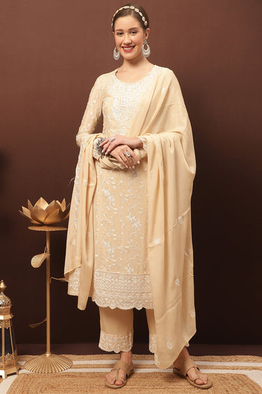 Beige Chinon Embroidered Function Wear Salwar Kameez