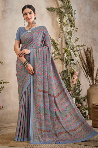 Grey Premium Crepe Silk School Uniform Saree