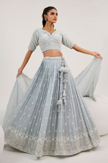 Champagne Grey Pure Georgette Heavy Embroidered Bridal Readymade Lehenga Choli