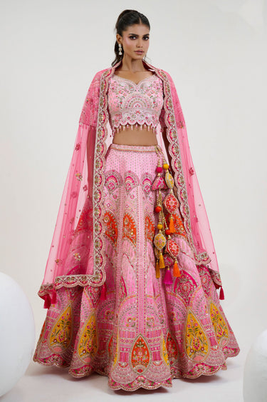 Pink Silk Bridal Attire Readymade Lehenga Choli