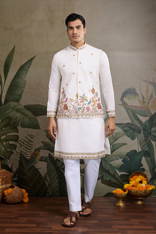 €64,95 EUR€128,95 EUR Original Price Save 50%/ Embroidered Satin Silk Off White Readymade Palazzo SuitSave 50%