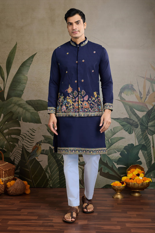 €68,95 EUR€137,95 EUR Original Price Save 50%/ Embroidered Chinon Navy Blue Readymade Palazzo SuitSave 50%