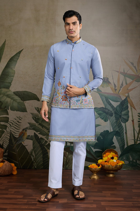 €66,95 EUR€133,95 EUR Original Price Save 50%/ Sky Blue Readymade Designer Salwar Kameez With Jacquard DupattaSave 50%