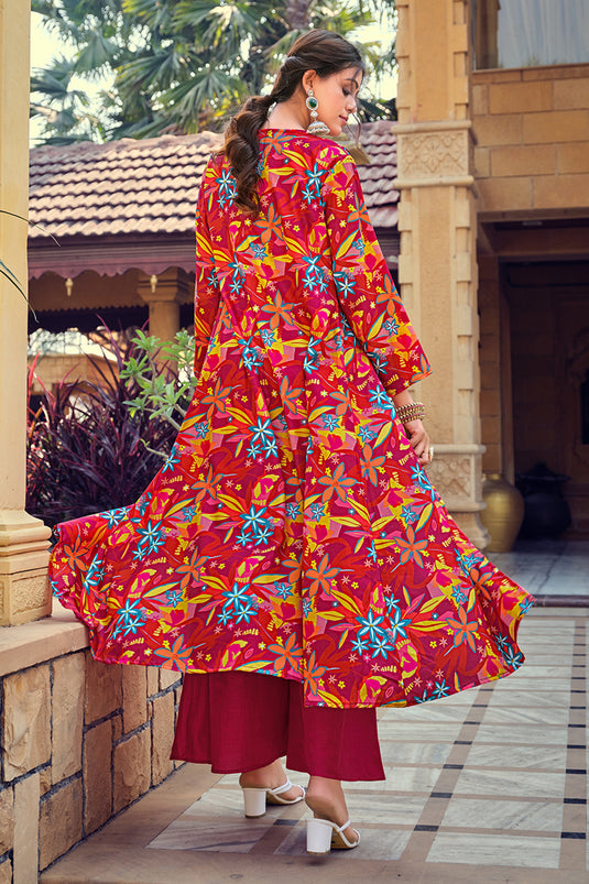 €41,95 EUR€83,95 EUR Original Price Save 50%/ Pretty Red Georgette Readymade Anarkali Salwar SuitSave 49%