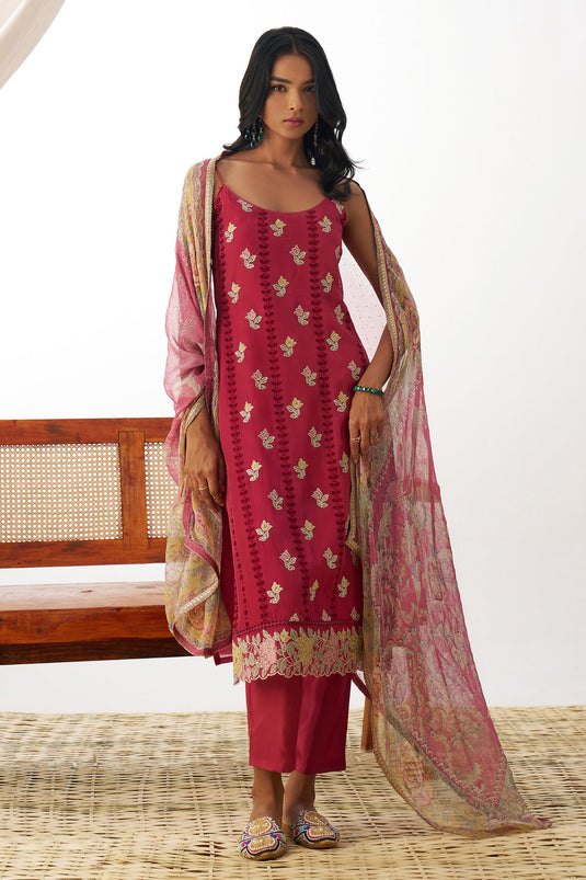 €50,95 EUR€101,95 EUR Original Price Save 50%/ Pink Festive Wear Embroidered Chinon Readymade Palazzo SuitSave 50%