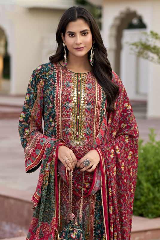 €68,95 EUR€137,95 EUR Original Price Save 50%/ Chinon Rani Embroidered Readymade Palazzo Salwar SuitSave 50%