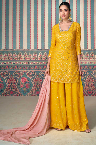 Attractive Mustard Color Chinon Fabric Sharara Suit