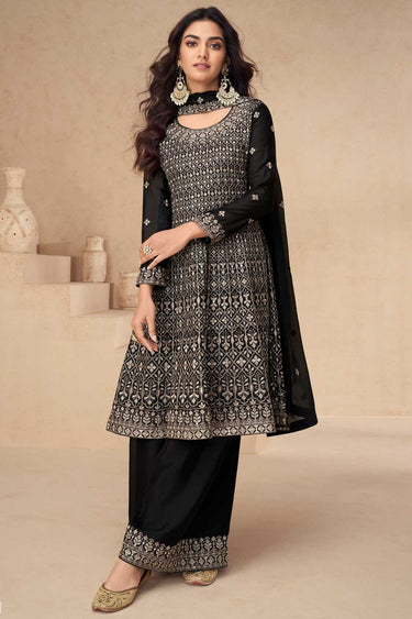 Black Color Chinon Silk Fabric Glorious Palazzo Suit