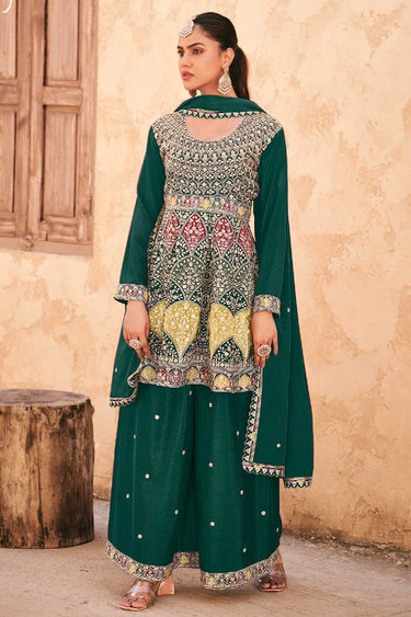 Chinon Fabric Green Color Glamorous Readymade Palazzo Suit