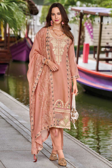 Engaging Peach Color Organza Fabric Readymade Salwar Suit