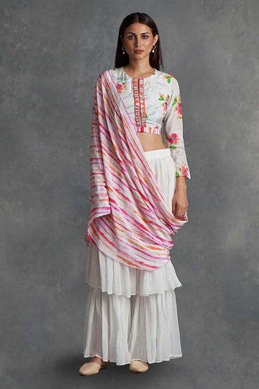 Exclusive White Color Crepe Fabric Printed Function Wear Fancy Palazzo Saree
