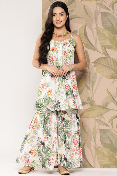 Exclusive White Crepe Fabric Function Wear Floral Printed Readymade Top With Bottom Set