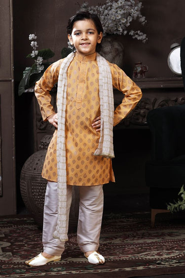 Peach Color Cotton Fabric Printed Festive Wear Readymade Boys Kurta Pyjama