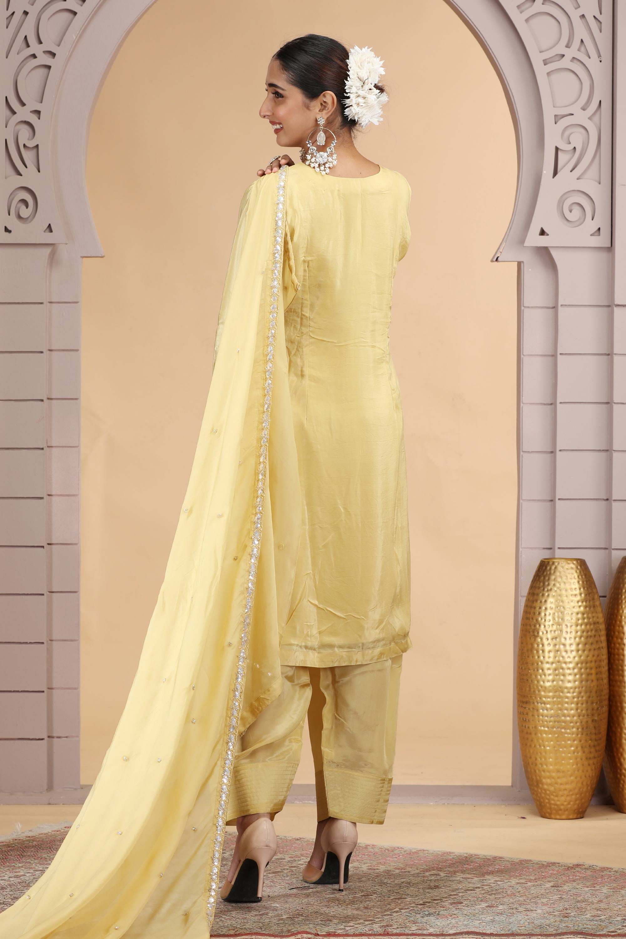 Beautifully Yellow Satin Silk Readymade Designer Salwar Suit