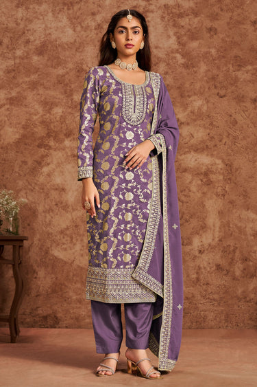 Jacquard Silk Fabric Embroidered Function Wear Designer Salwar Suit In Purple Color
