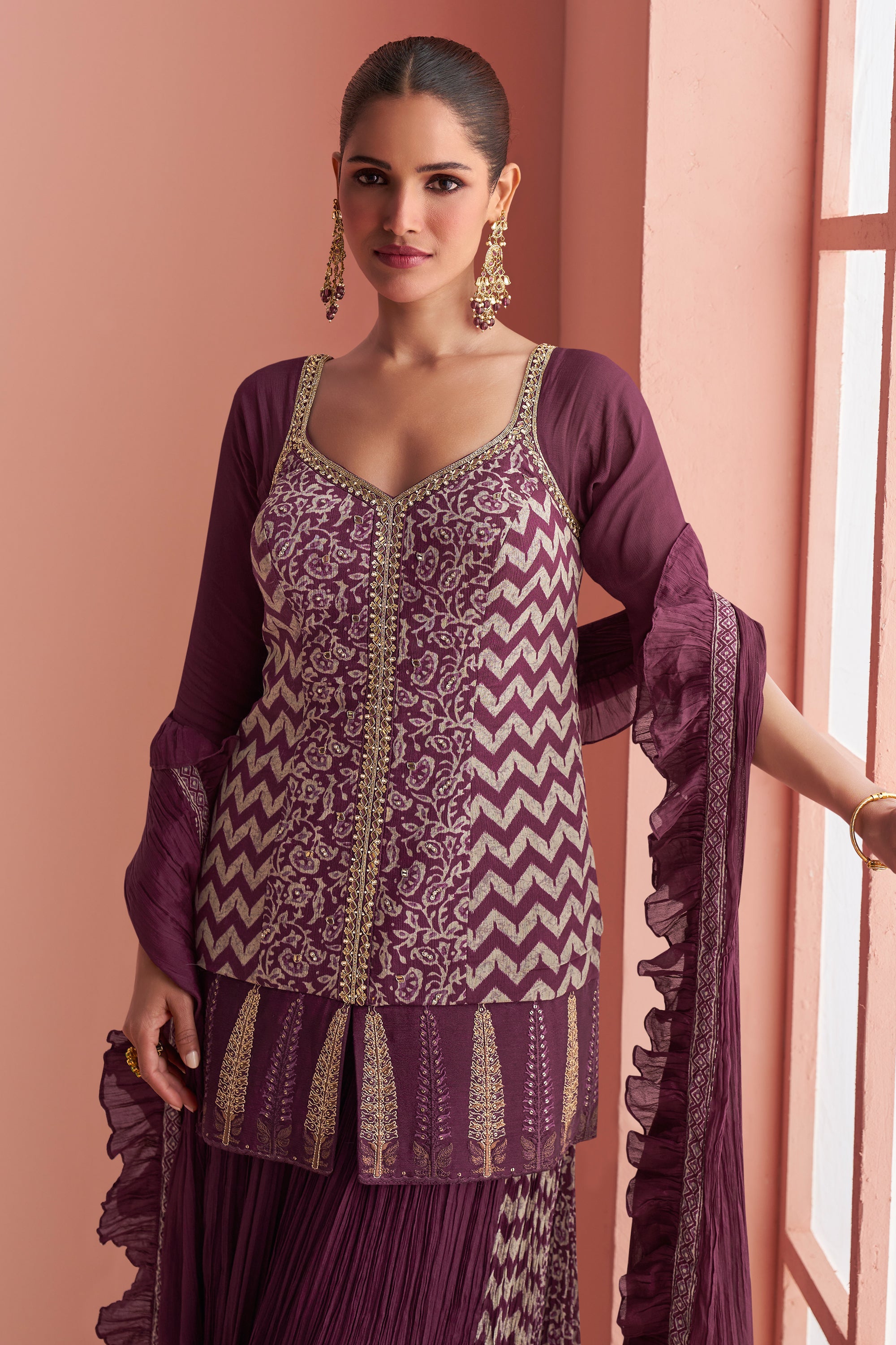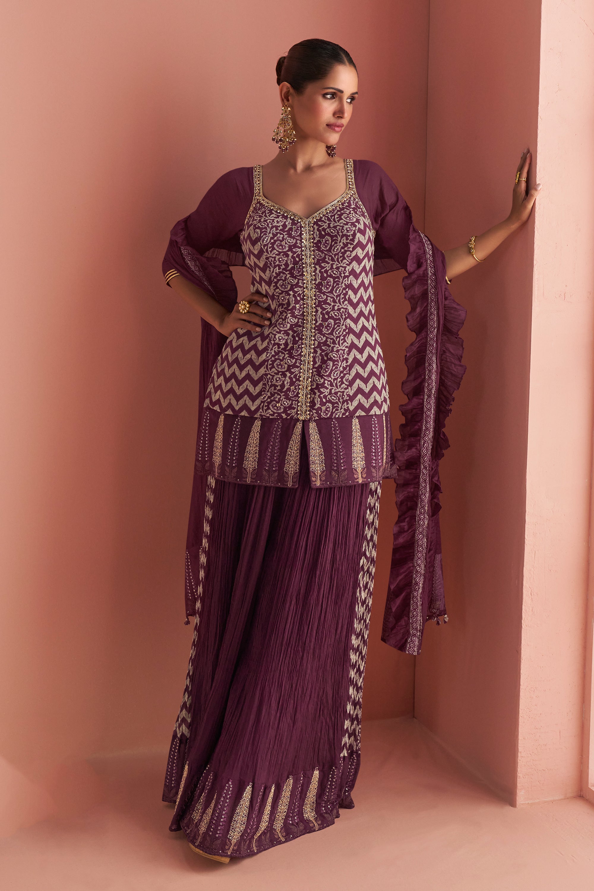 Wine Embroidered Readymade Palazzo Salwar Suit
