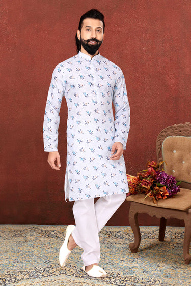 Cotton Fabric Reception Wear Attractive Readymade Men Kurta Pyjama In White Color
