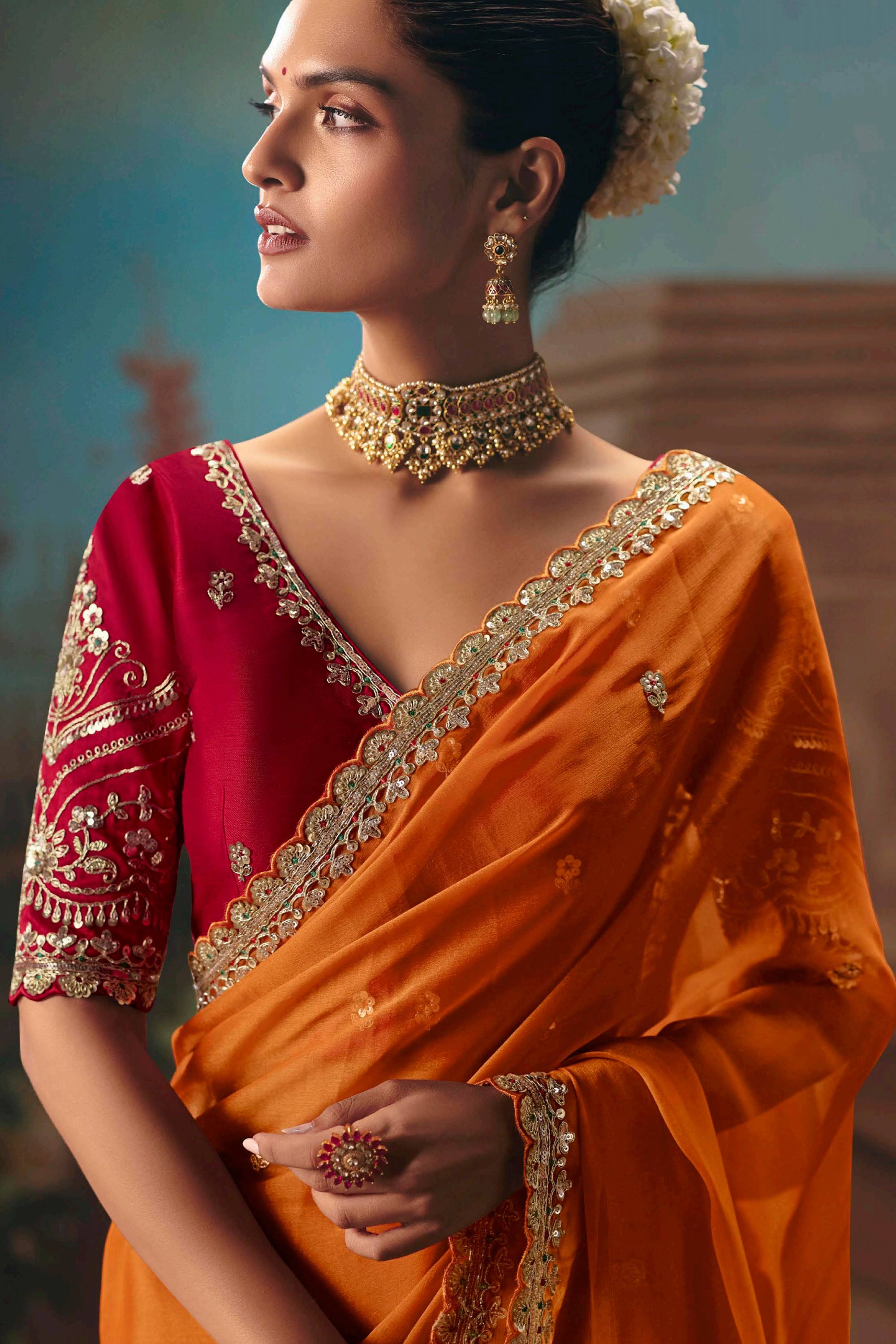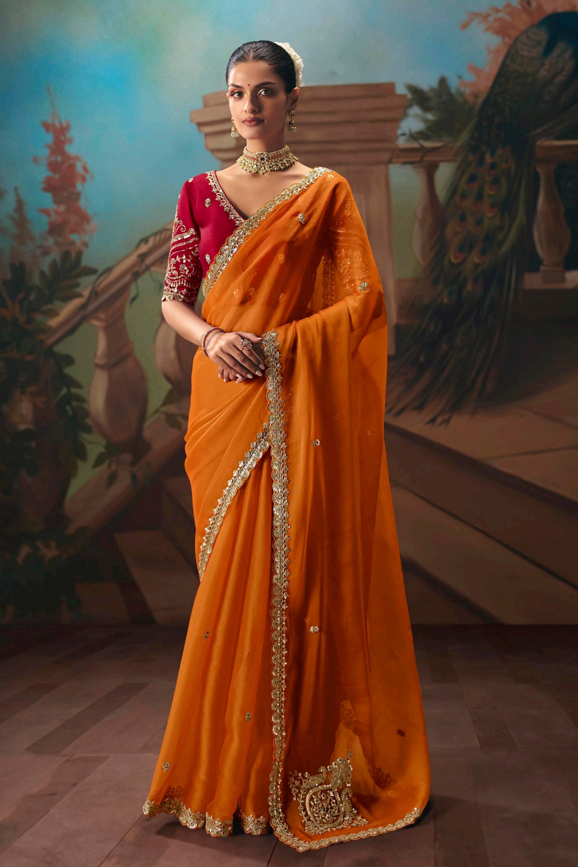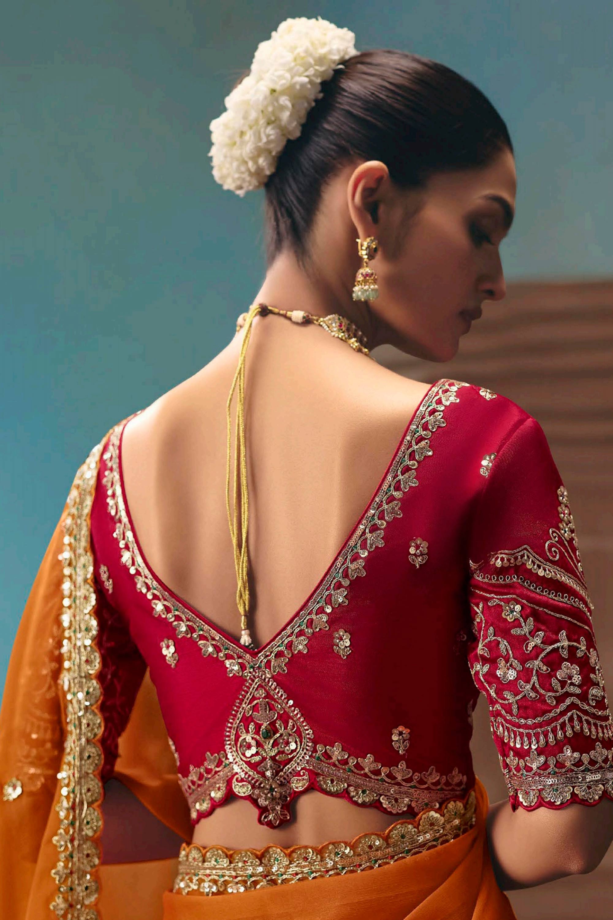 Art Silk Fabric Orange Wedding Wear Saree