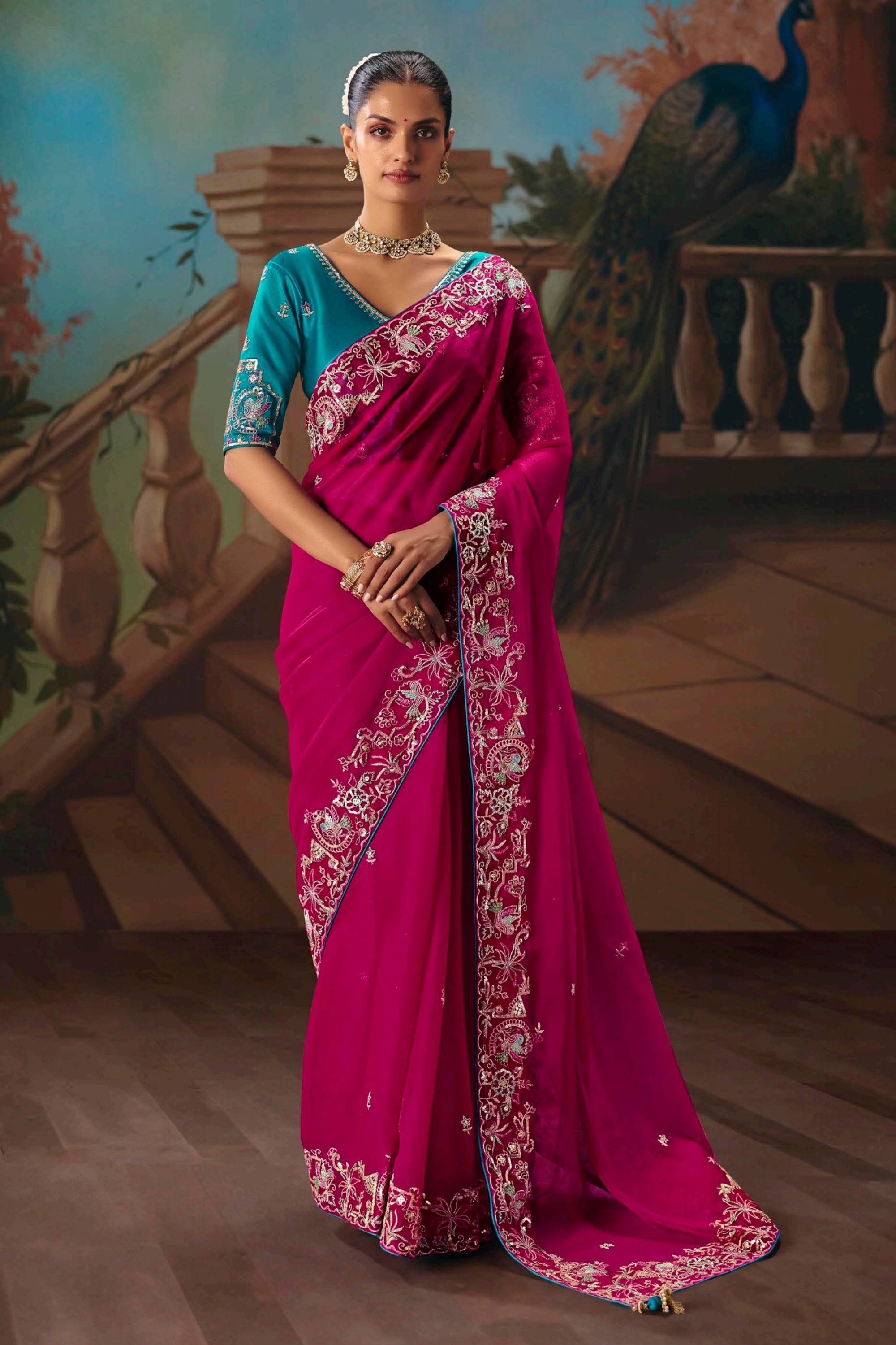 Art Silk Fabric Pink Color Saree For Wedding Wear