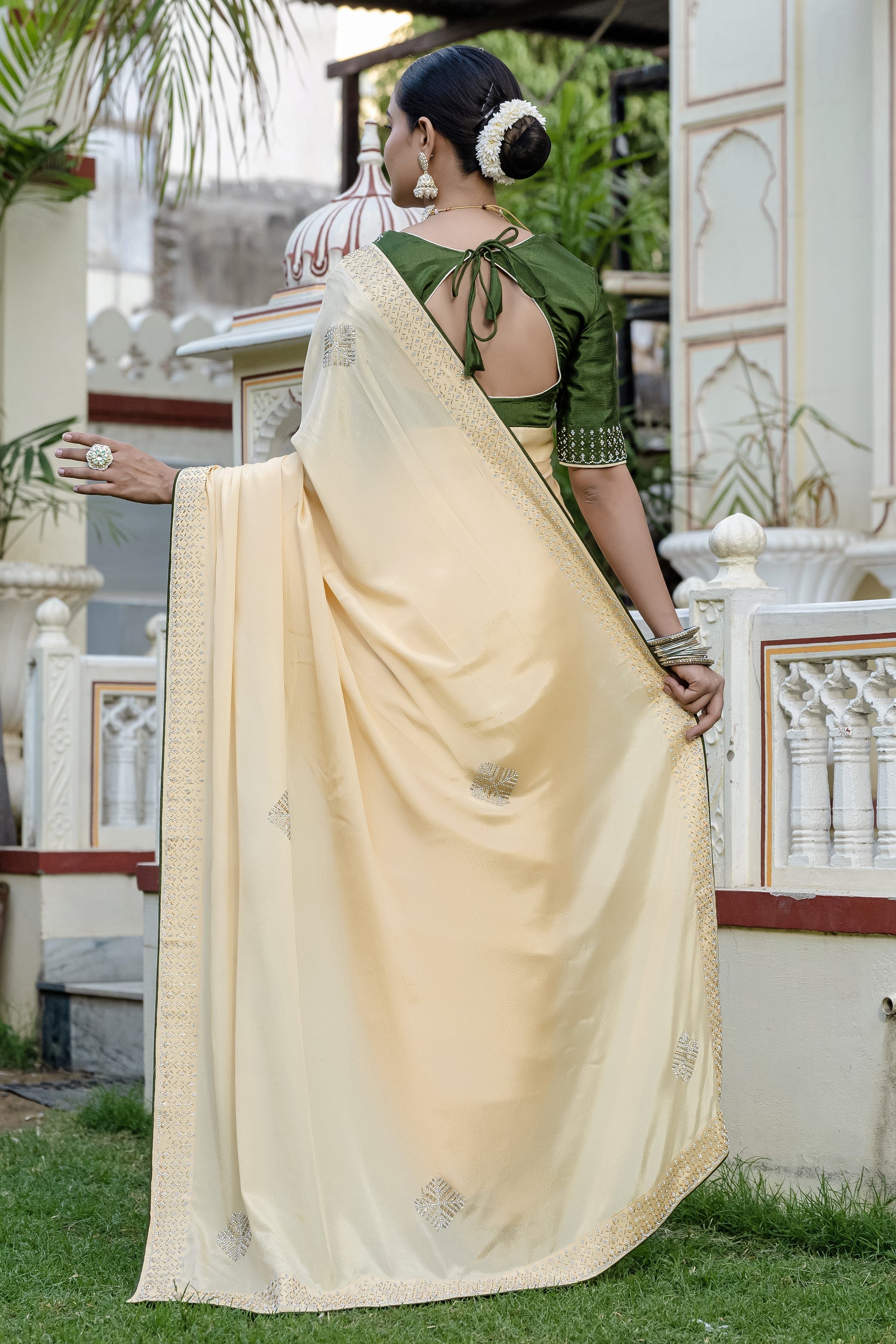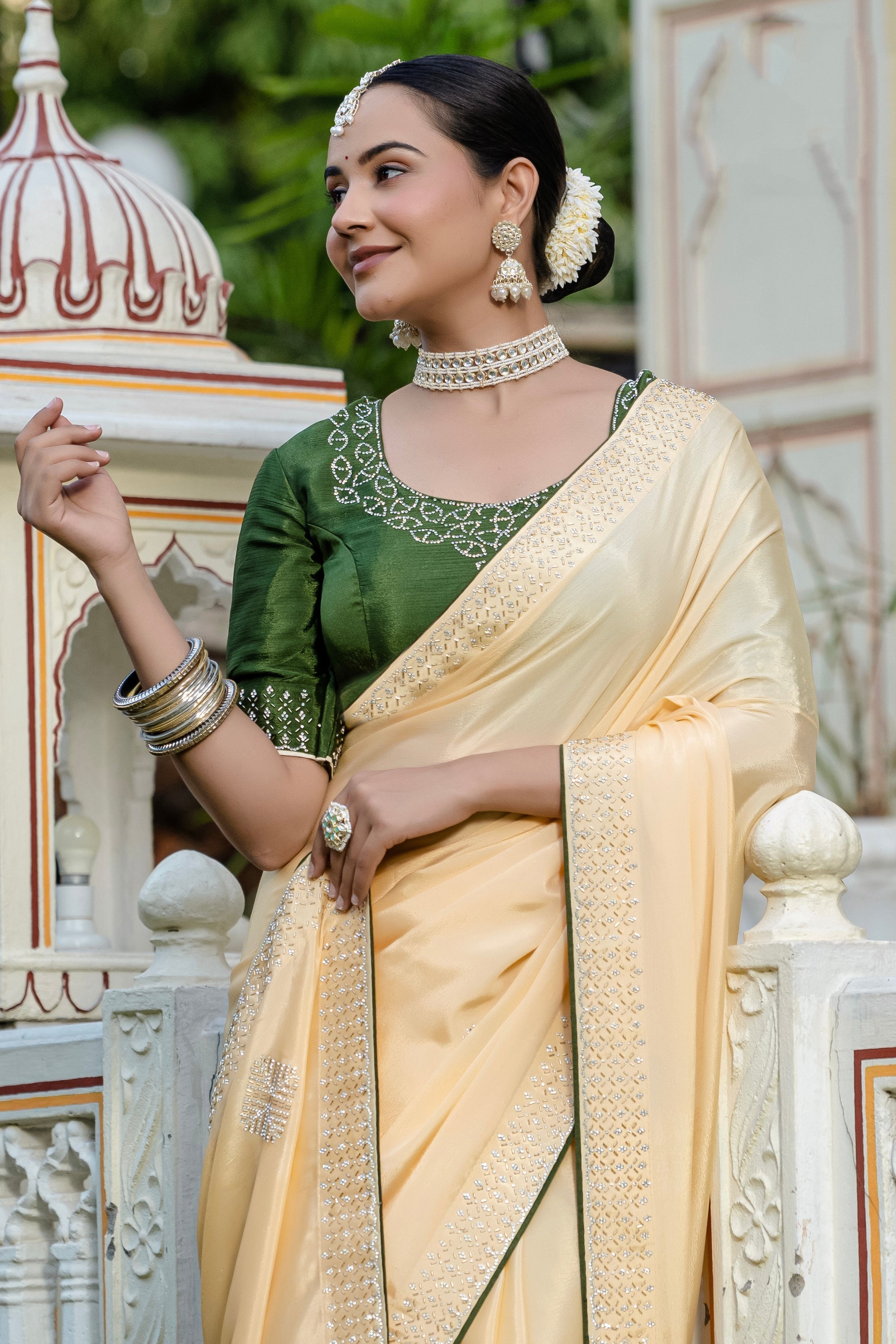 Beige Chinon Stone Work Sangeet Wear Saree