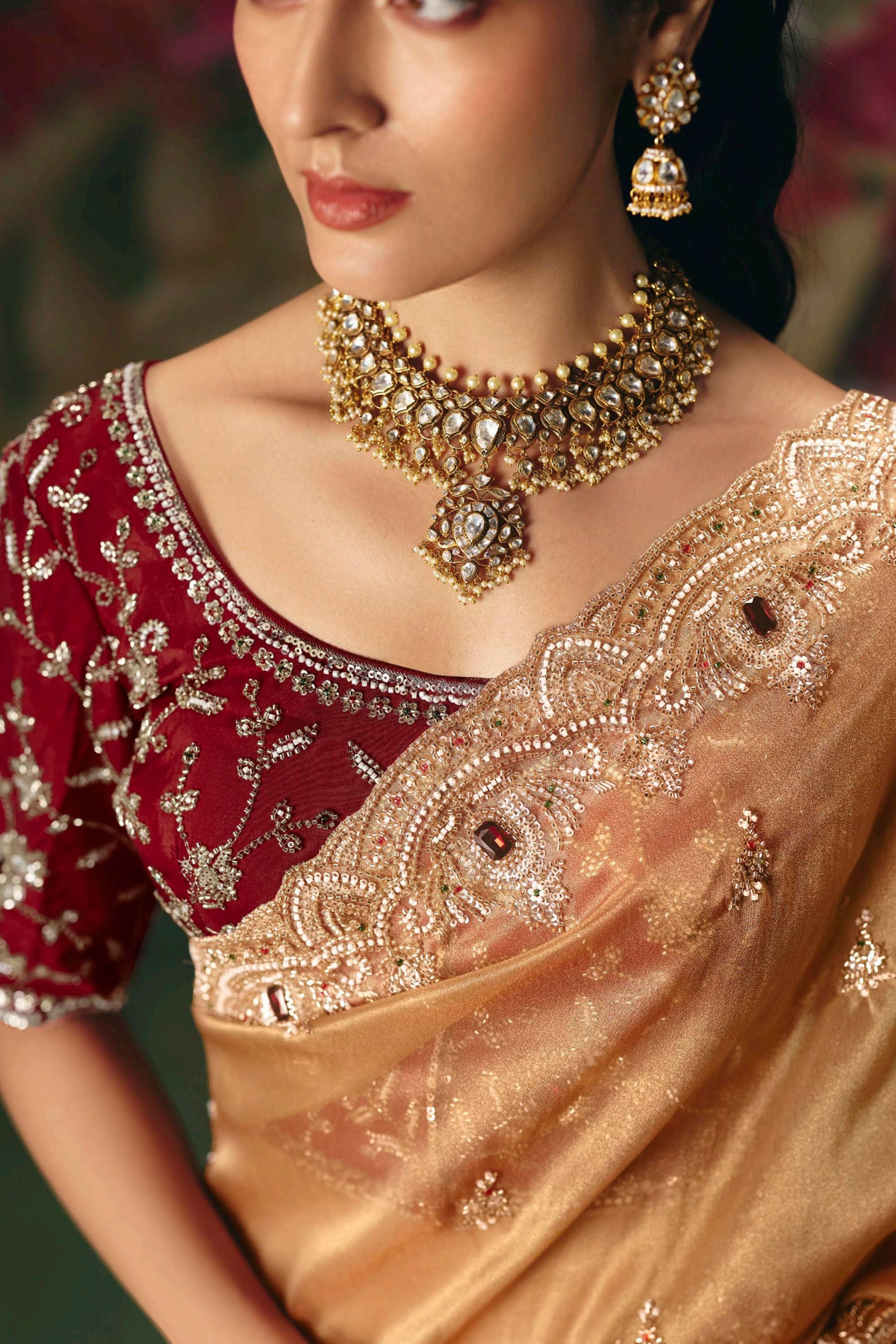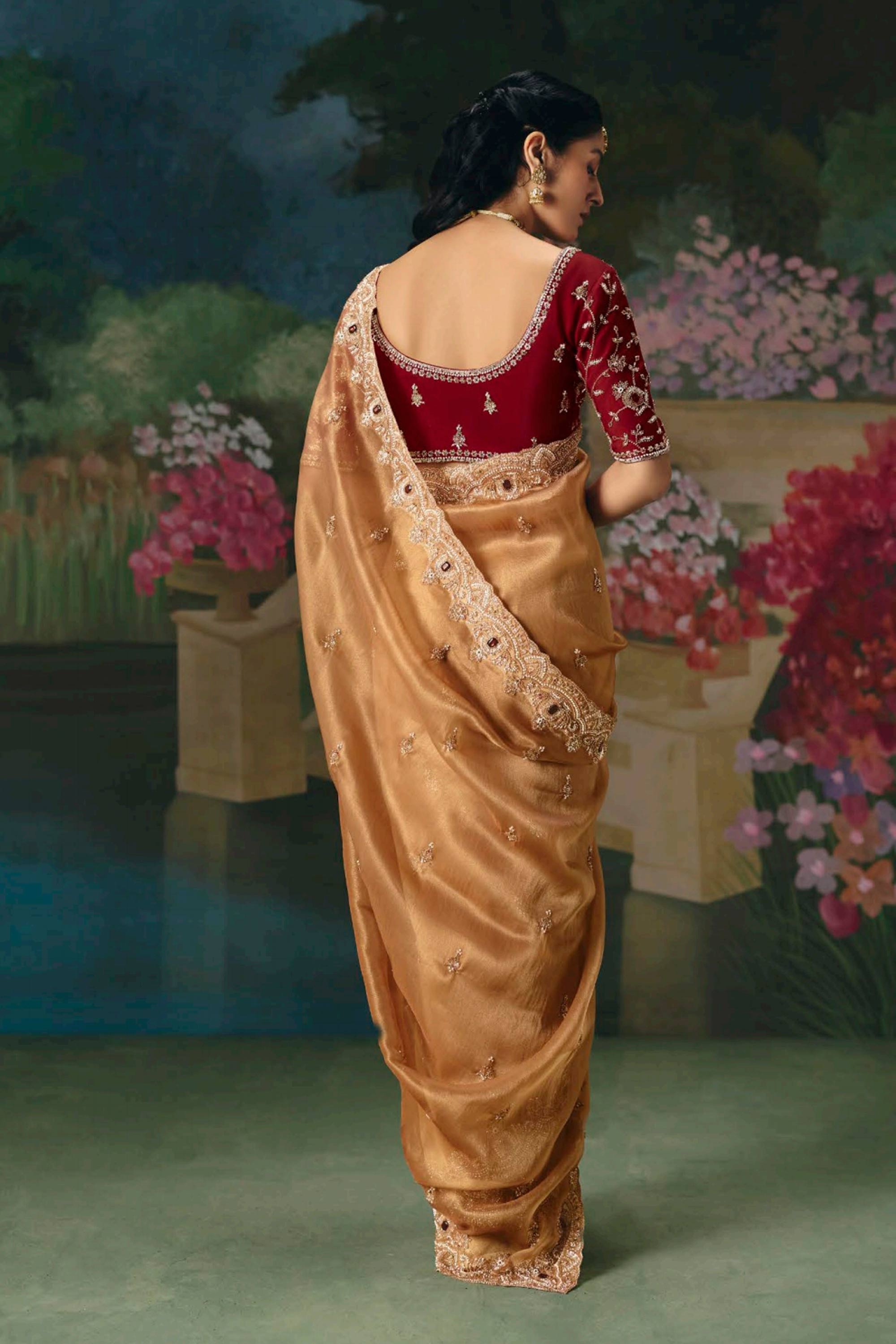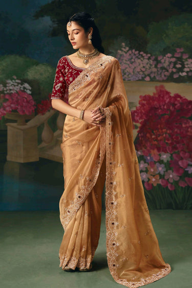 Embroidered Art Silk Beige Saree For Wedding Wear
