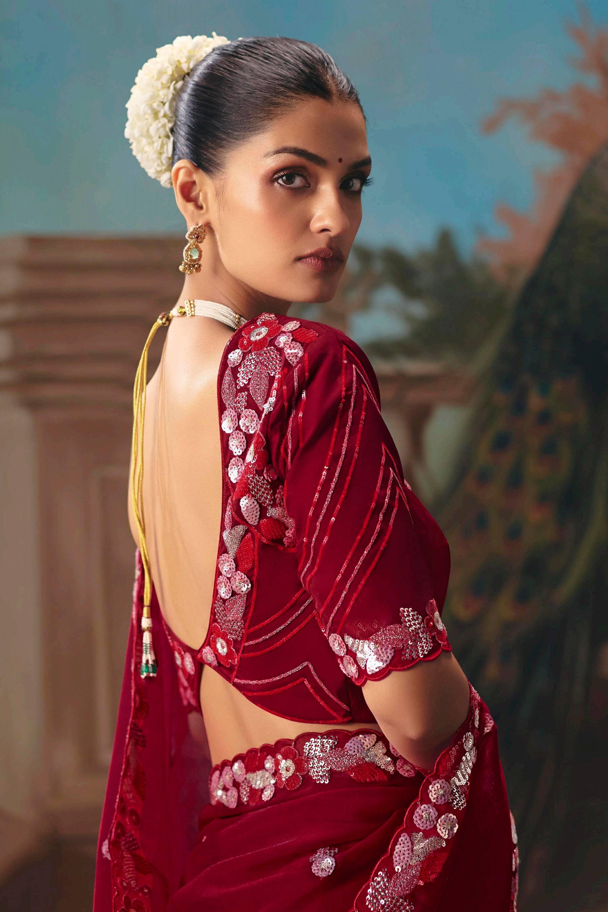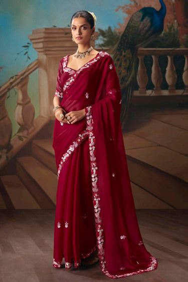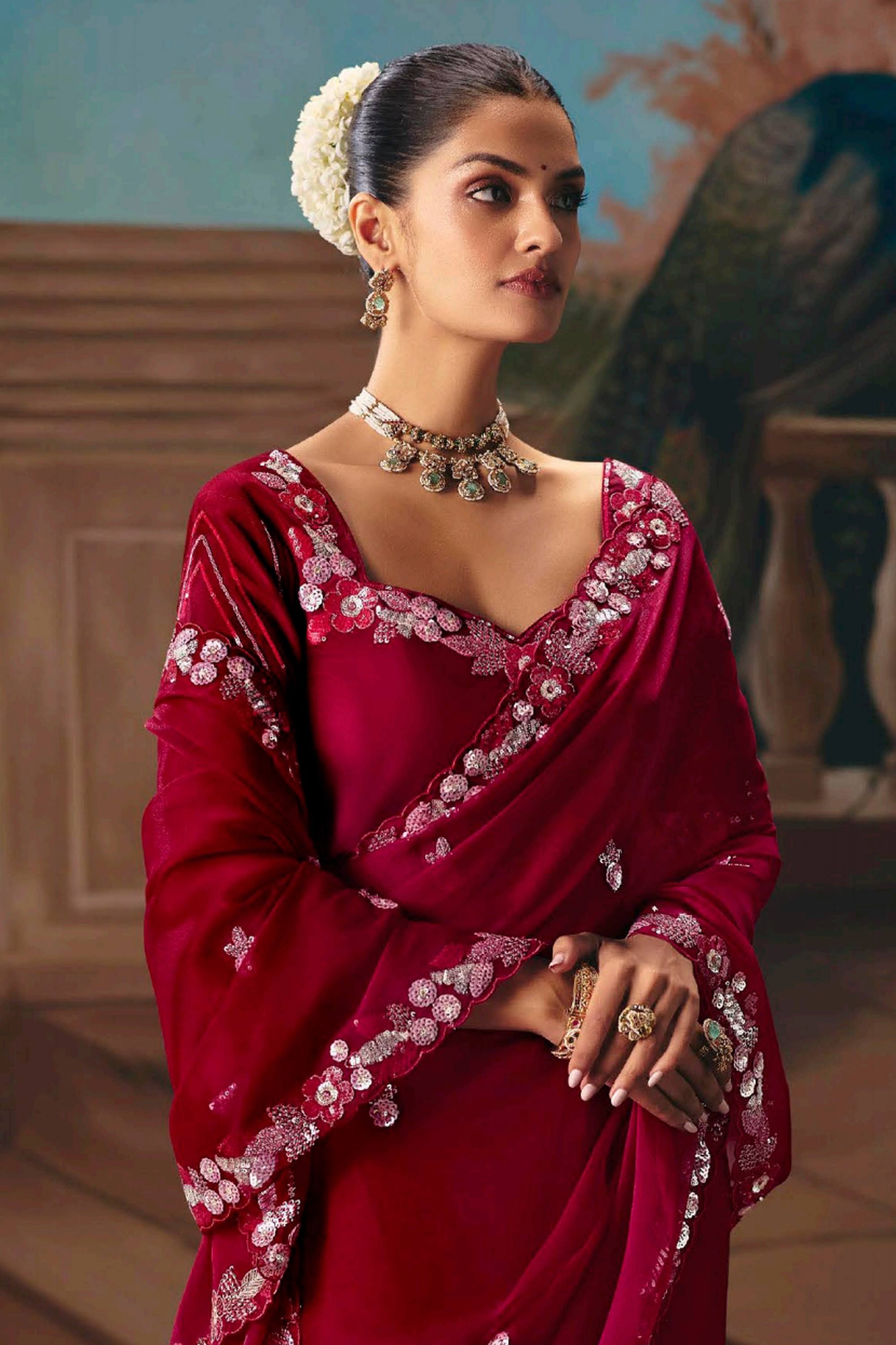 Embroidered Art Silk Fabric Maroon Saree For Wedding Wear