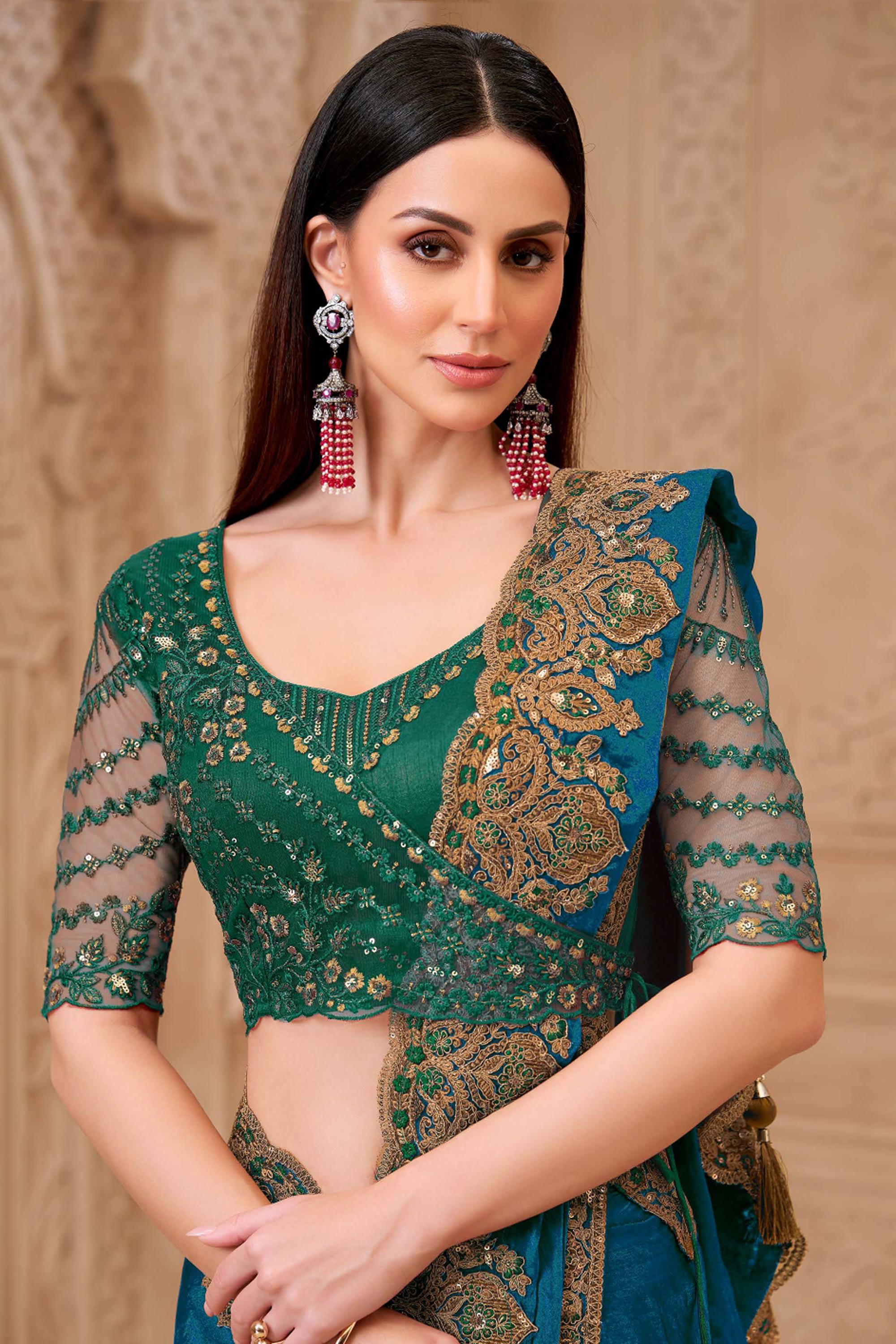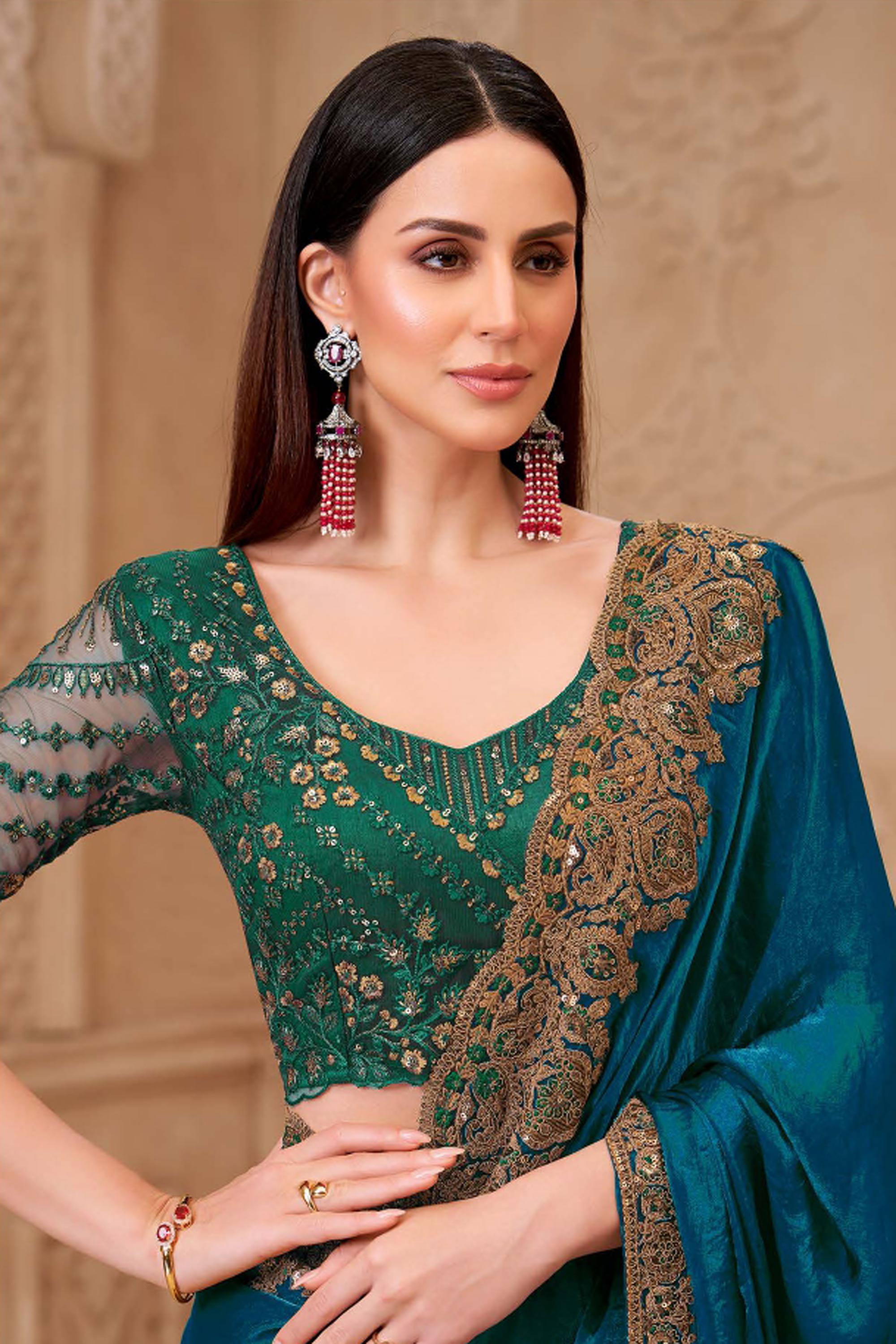 Embroidered Art Silk Teal Function Wear Saree