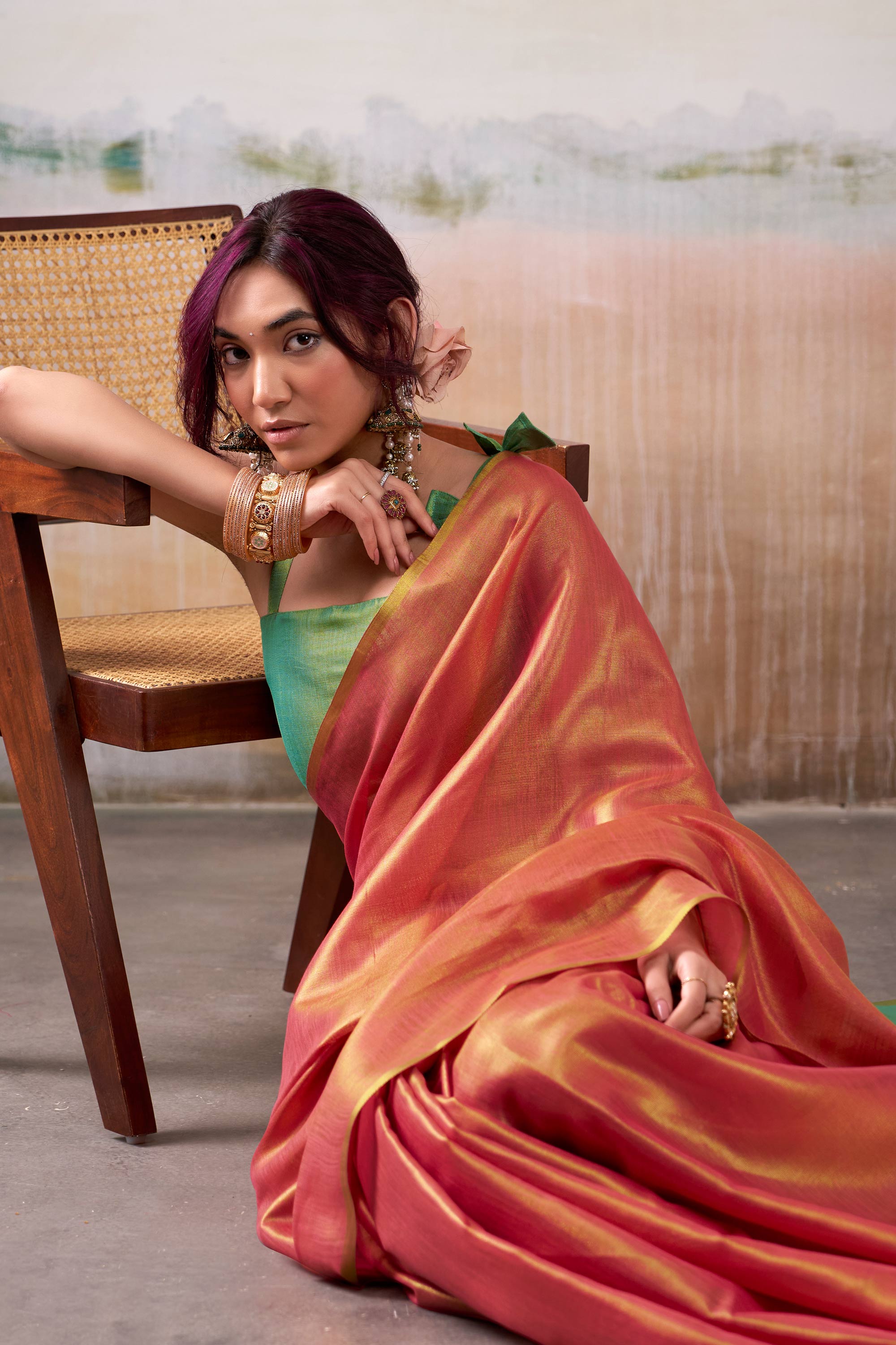 Elevate your festive style with the Festive Wear Elegance Tissue Handloom Saree. Featuring stunning handloom craftsmanship and tissue fabric, this saree balances traditional elegance with contemporary appeal. Its lightweight nature ensures ease of wear, while the subtle shine adds just the right amount of flair. Perfect for weddings, festivals, or cultural gatherings, this saree pairs beautifully with both classic and modern jewelry. The intricate detailing showcases an appreciation for skilled artistry, making it a valued choice for any occasion. Whether for yourself or as a gift, this saree is a must-have for anyone who cherishes heritage and elegance.