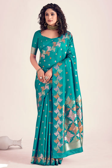 Fashionable Sea Green Color Printed Banarasi Style Silk Saree