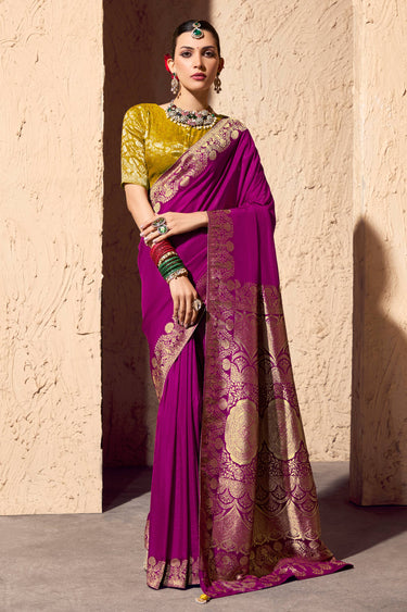 Function Wear Magenta Weaving Work Saree In Georgette Fabric